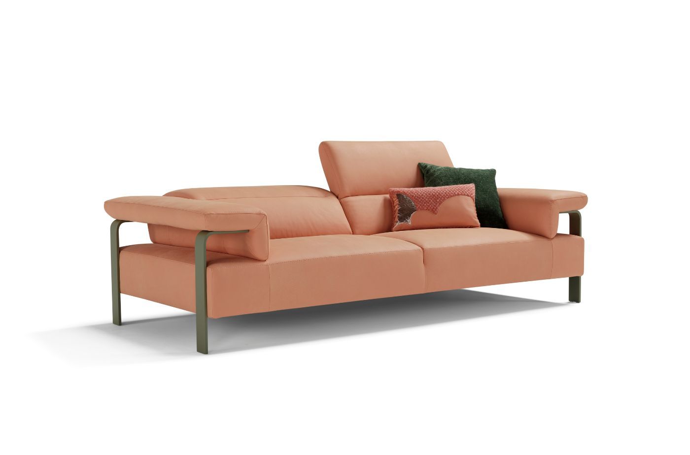 Elegante, dal design moderno e lineare, ASHLEY è il divano caratterizzato dalla base personalizzabile in metallo che sale lungo il bracciolo.