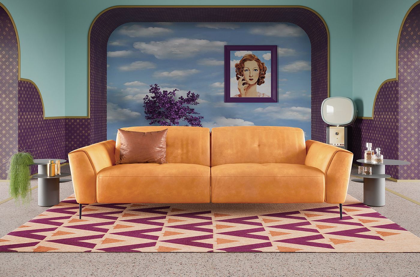 Dona un tocco retrò al tuo living con STEFANIE, il divano d’ispirazione vintage con piede alto in metallo. Scegli il colore che più ti piace per i piedini e il rivestimento e rendilo unico con il bordino colorato a contrasto.