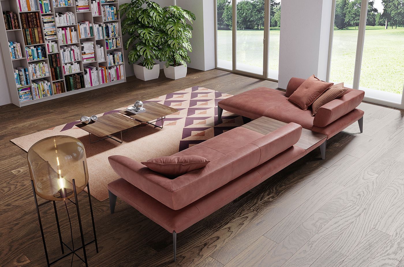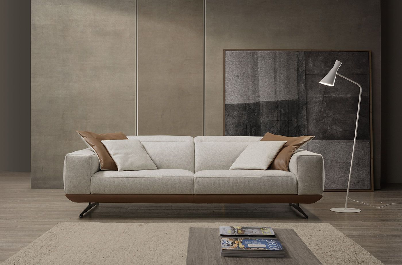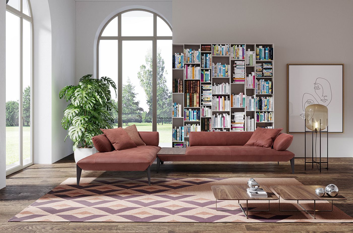 Semplice, geometrico e giocato sui contrasti, CHARLES è il divano con piedi alti che combina la comodità e il comfort avvolgente delle sedute generose con la leggerezza dei piedi conici che ne slanciano le proporzioni.