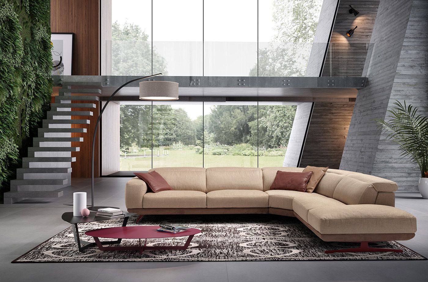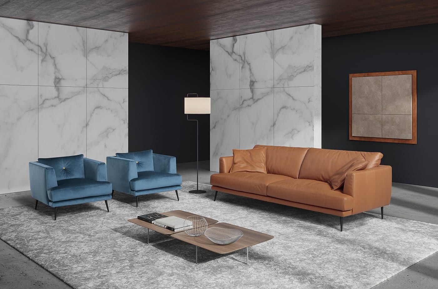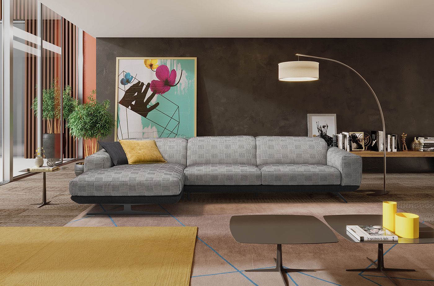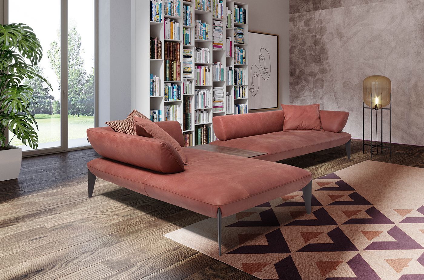 Semplice, geometrico e giocato sui contrasti, CHARLES è il divano con piedi alti che combina la comodità e il comfort avvolgente delle sedute generose con la leggerezza dei piedi conici che ne slanciano le proporzioni.
