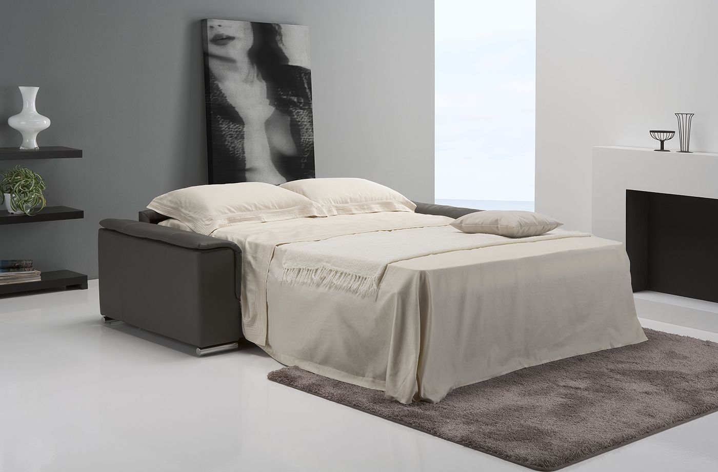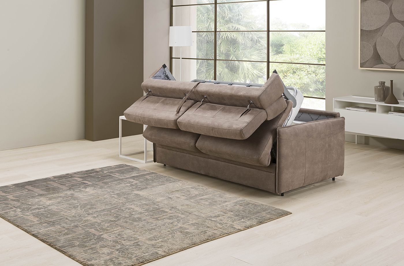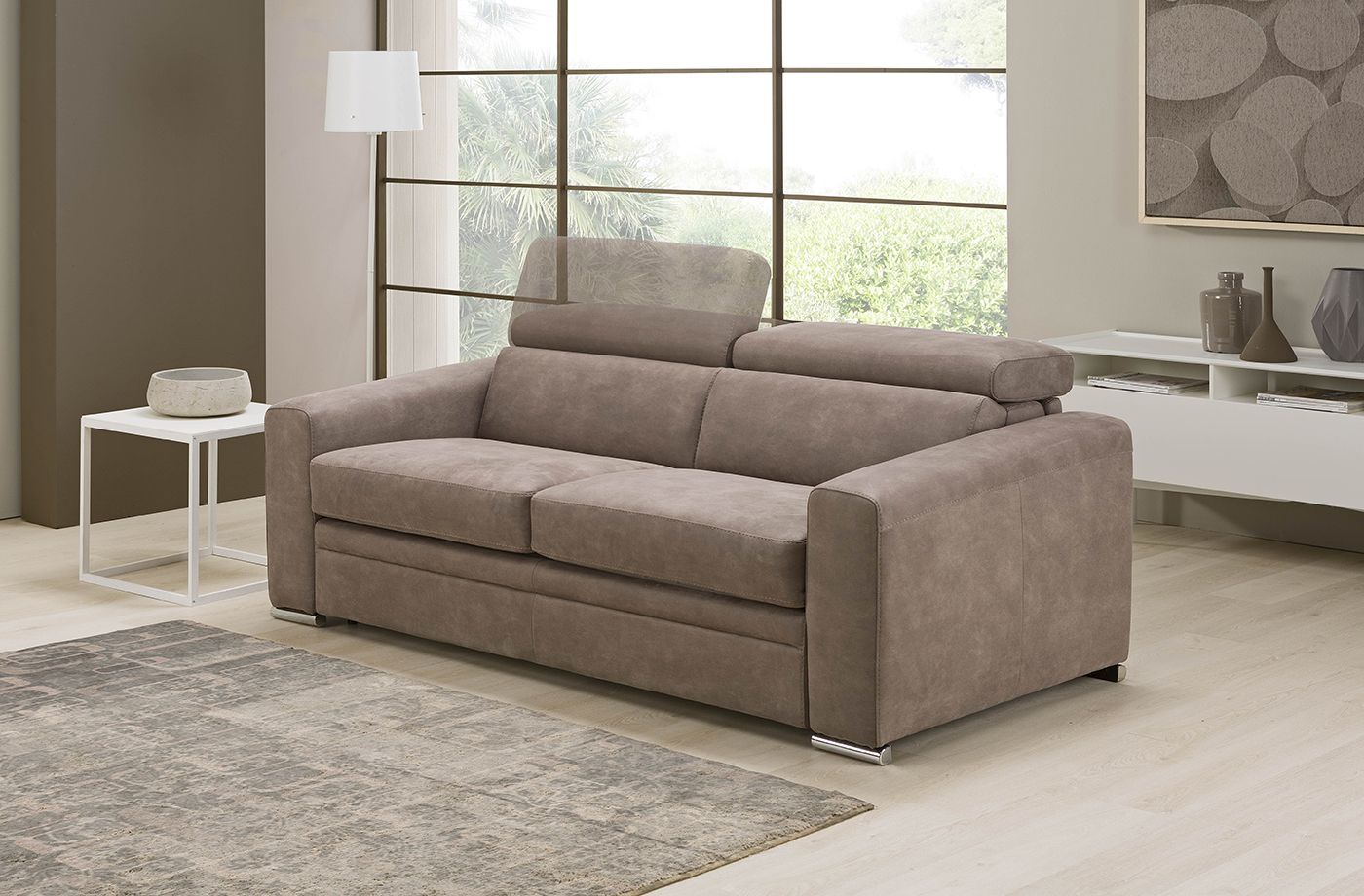 Elegante nei suoi piedini alti in metallo e comodissimo grazie ai meccanismi manuali a cricchetto presenti sugli schienali, FRANCINE si trasforma in un batter d’occhio in un letto per gli ospiti di passaggio. Personalizzalo come più ti piace scegliendo tra più di 550 rivestimenti tra pelli e tessuti.