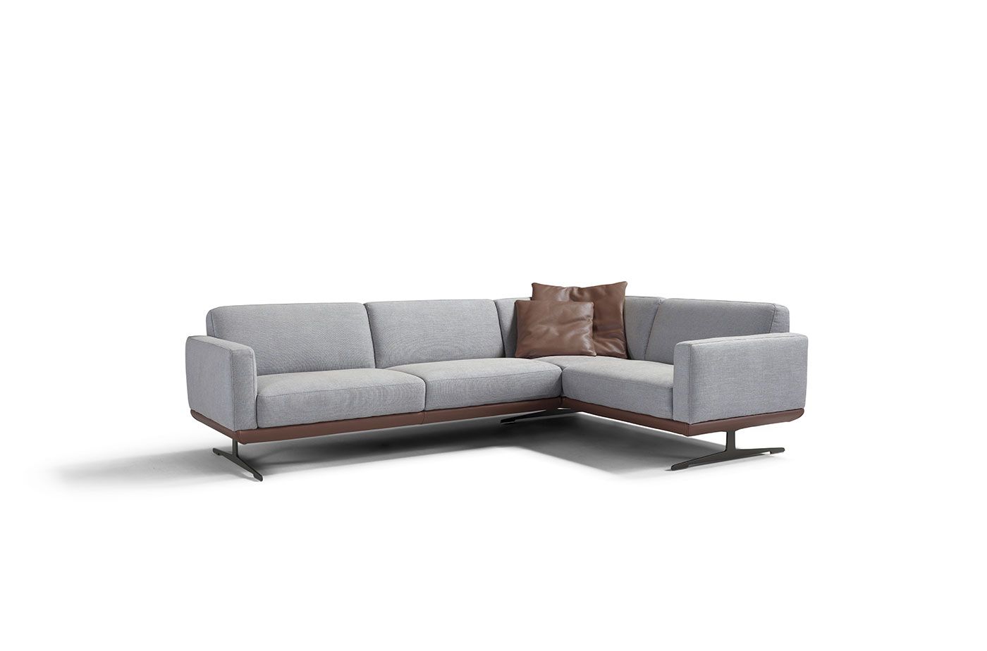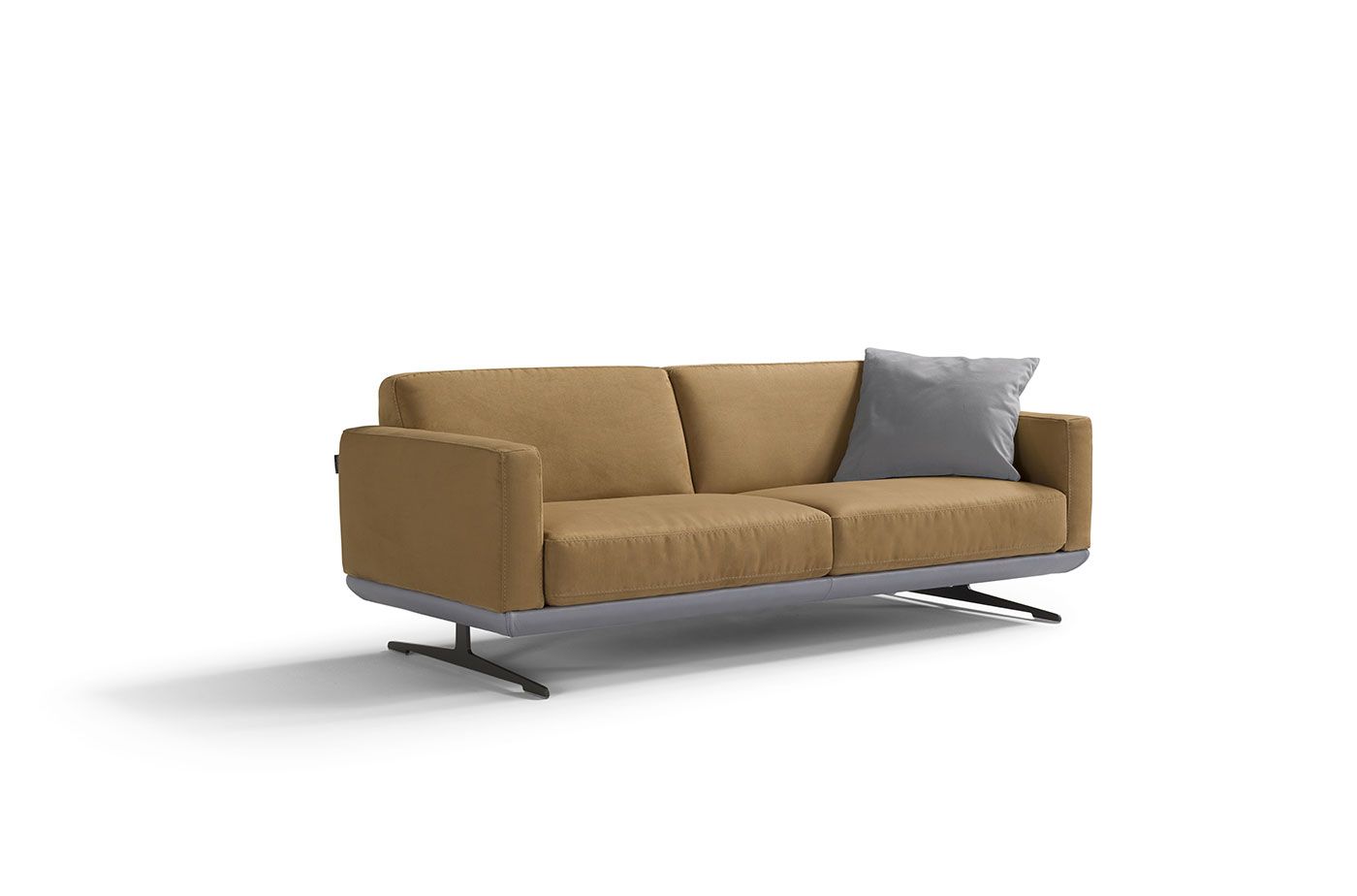 I piedini in metallo dalla forma geometrica e rigorosa slanciano il divano giocando con le linee diagonali della seduta.