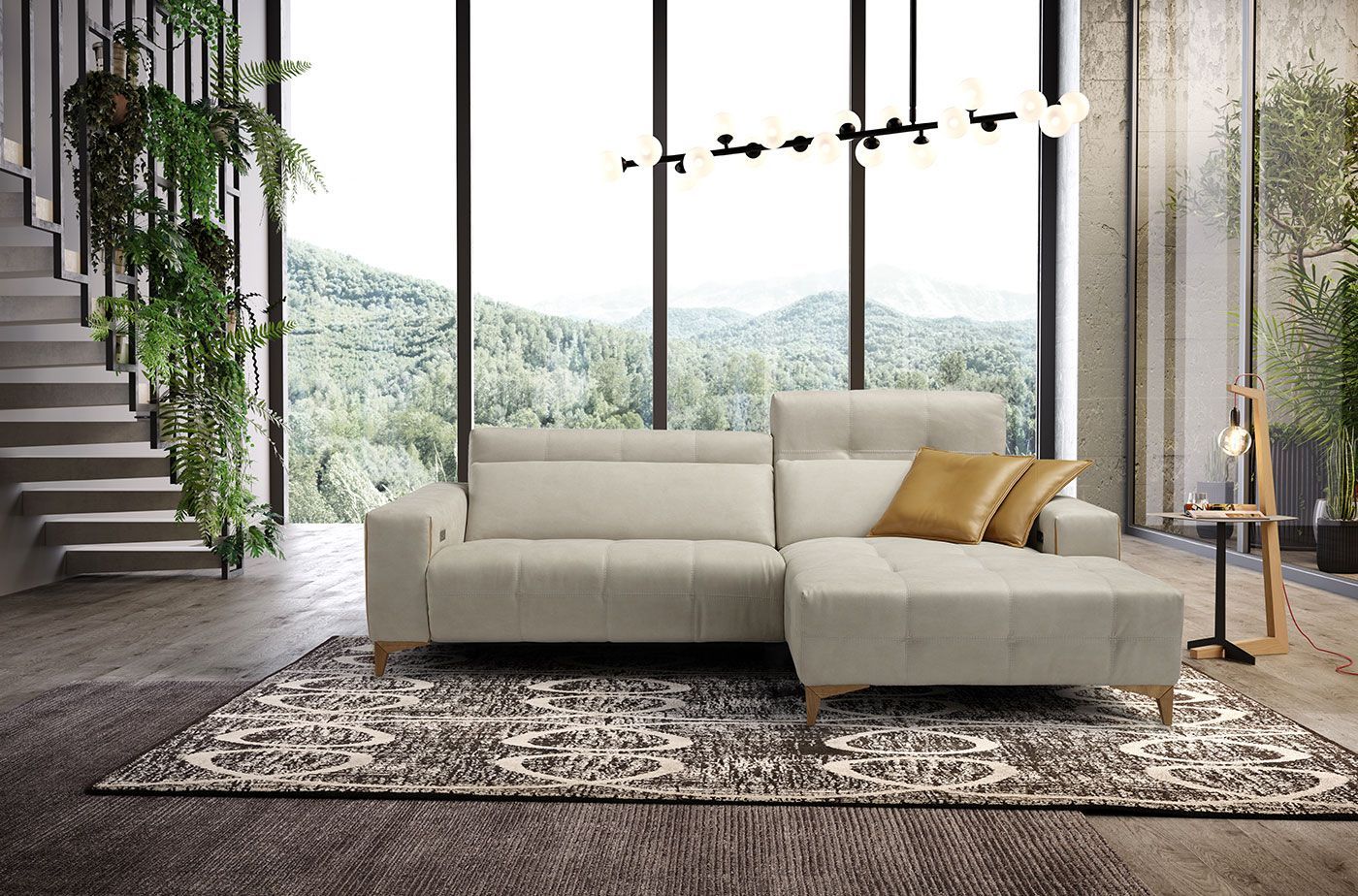 GLORIA è il divano relax dallo stile industrial e contemporaneo con base alta in acciaio e diverse finiture. Moderno con le sue forme lineari e molto spazioso grazie alle sue sedute generose, il divano GLORIA riunirà tutti in salotto.