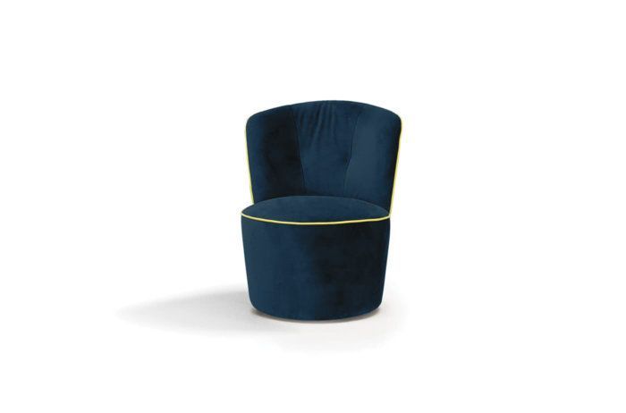 SCISCI darà un tocco di eclettismo al tuo salotto, studio o camera da letto. Dal design originale, è caratterizzata da una forma cilindrica, con uno schienale semicircolare imbottito che rende avvolgente la seduta seppur senza braccioli.