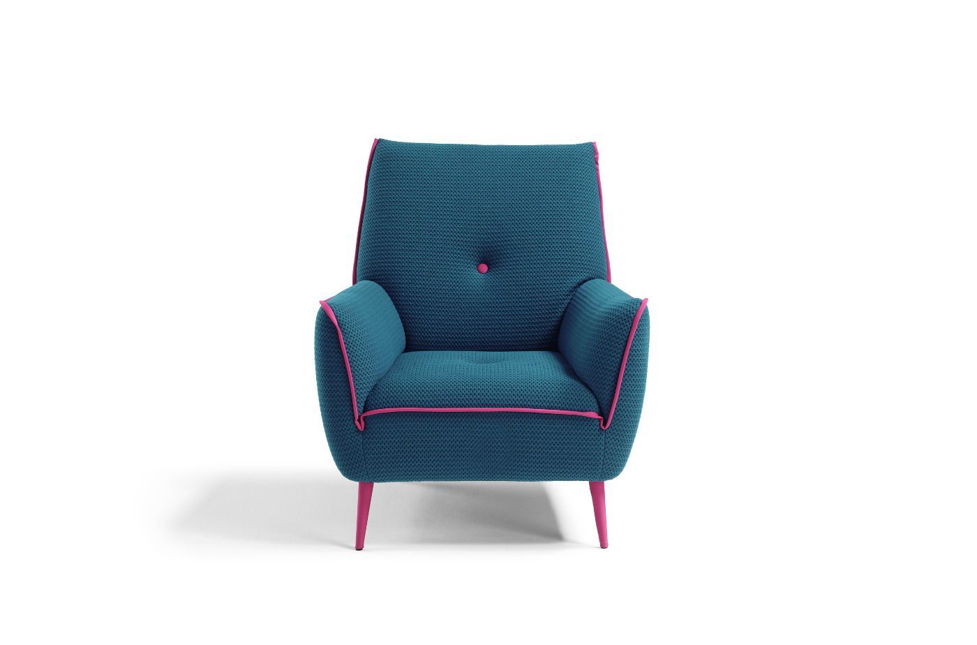 MIMÌ è la poltrona perfetta per living giocosi e giovanili. Ispirata al design anni 70, è caratterizzata da forme avvolgenti e da un morbido comfort di seduta.